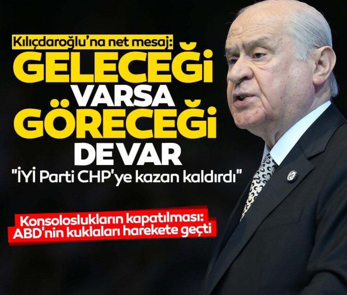 MHP Genel Başkanı Devlet Bahçeli, Tekirdağ’da partisinin düzenlediği mitingde yaptığı konuşmasında, CHP Genel Başkanı Kemal Kılıçdaroğlu'nun 'Ben Kemal Geliyorum' açıklamasını eleştirerek, "Kılıçdaroğlu gelse ne yazar, gelmese ne yazar. Kimin geldiğini 14 Mayıs'ta göreceğiz" dedi. Bahçeli, Kılıçdaroğlu ve Millet İttifakı’nı sert ifadelerle hedef aldı.