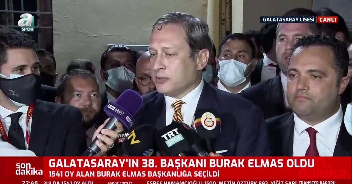 Hayırlı İşler...Galatasarayın yeni başkanı Burak Elmas: Futbolumuz Cumhurbaşkanı Erdoğanın yatırımlarına yakışır şekilde olmalı